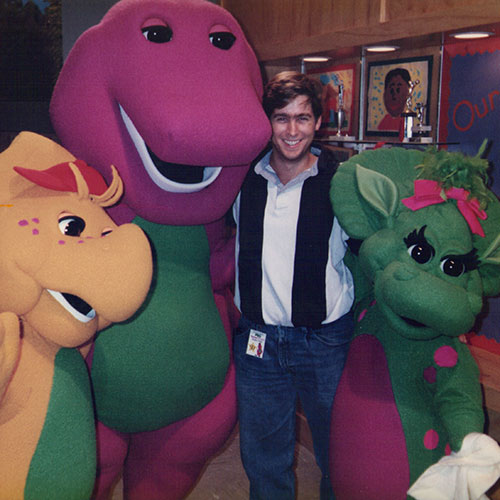 Barney and Friends was in need of some help in their craft shop, building props, set dressings, and exploring new technologies for costumes. DJ became "right at home", creating a variety of gadgets, props, and putting camera systems into the costumes. He eventually started building hardware to replicate the costumes (harnesses, eyeball rigs, fiberglass structures, etc) - which continued for several years.